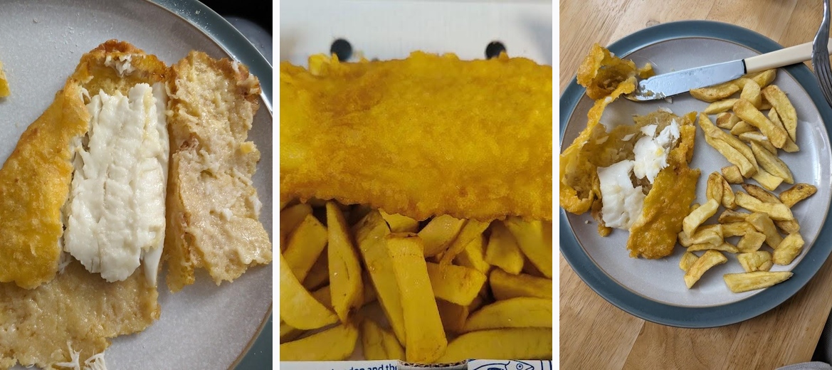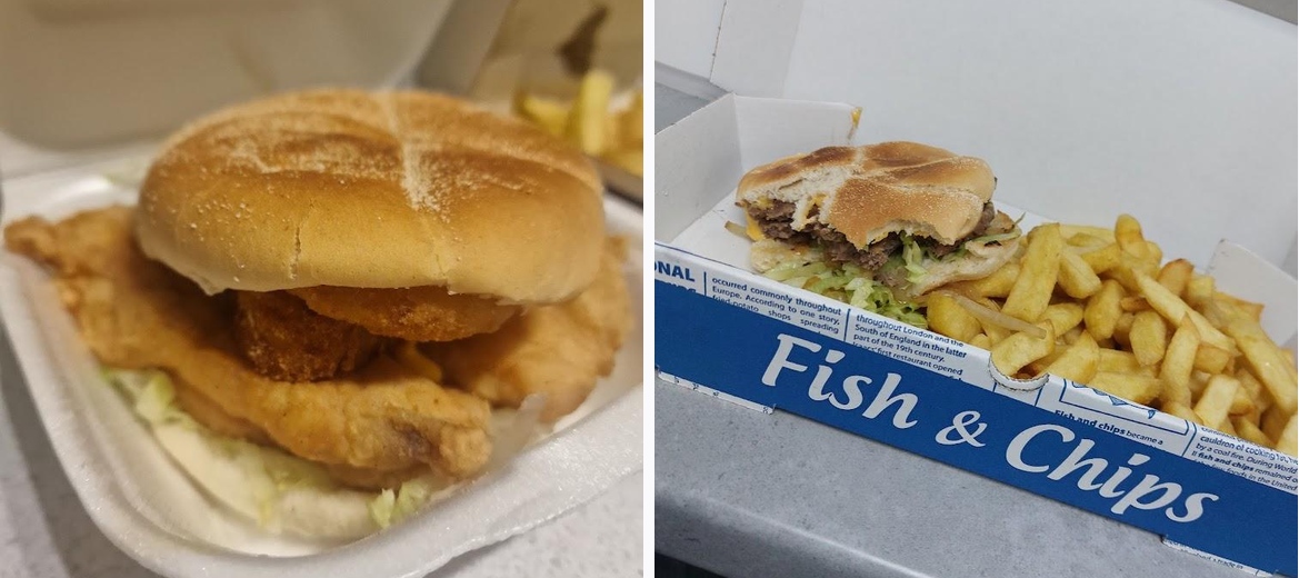 You should try the regular or large cod, the delicious haddock, and don’t miss out on the burgers, particularly the Chicken Fillet.